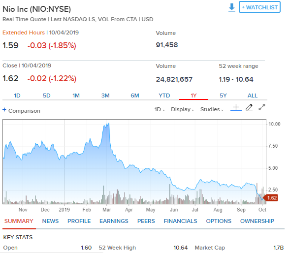虽然Wework没有IPO上市,但它的债券在市场交易。这对于同样处于亏损状态的蔚来汽车是一大利空(谁还敢投钱?)。蔚来的股价,在10月份可能还将继续下跌,极有可能会跌破1美元大关。为了避免连续30天股价低于1美元,而被迫退市。蔚来可能会被迫并股,比方说:十股并一股。然后,该新闻会让蔚来股价继续走低,它今年下半年的市值极有可能会跌破10亿美元。
