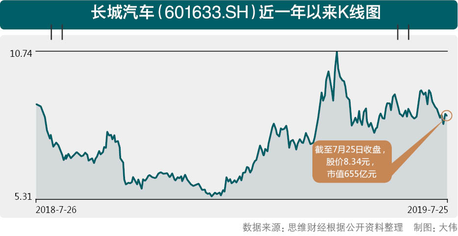 在此之前的7月20日,长城汽车公布了2019年中期业绩预告,上半年公司营收为413.8亿元,同比减少15%;归母净利润为15.3亿元,同比减少58.6%;扣非净利润为12.4亿元。同比减少65.4%。