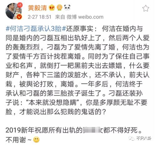 何洁承认生三胎之后,关于她和刁磊的关系,吃瓜群众也是“心知肚明”了,吃瓜群众之一的黄毅清还写了不少对此事的评论。