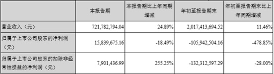 10月28日,贝因美(002570.SZ)发布第三季度公告。报告显示,贝因美前三季度总营收为20.17亿元,同比增长11.46%;归属于上市公司股东的净利润为-1.06亿元,同比下滑478.85%;归属于上市公司股东的扣除非经营性损益净利润为-1.32亿元,同比下滑28.00%。