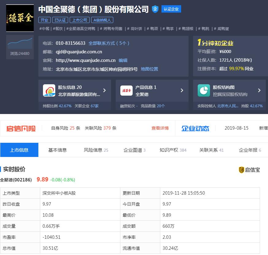 三季度净利降近7成 董事总经理离职 谁能撑起全聚德这艘百年的大船?