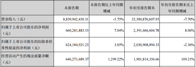 10月27日,华东医药(000963.SZ)公布的三季度财报显示,前三季度实现营收为255.01亿元,同比下降7.70%;净利润为23.91亿元,同比增长8.06%;扣非净利润为20.31亿元,同比下滑2.36%。