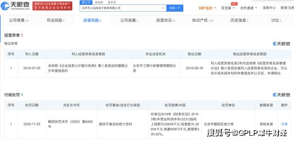 据天眼查APP数据,11月25日,北京市朝阳区统计局对“网红”燕窝品牌“小仙炖”关联公司北京市小仙炖电子商务有限公司予以处罚,原因是因北京市小仙炖电子商务有限公司提供了不真实的统计资料。