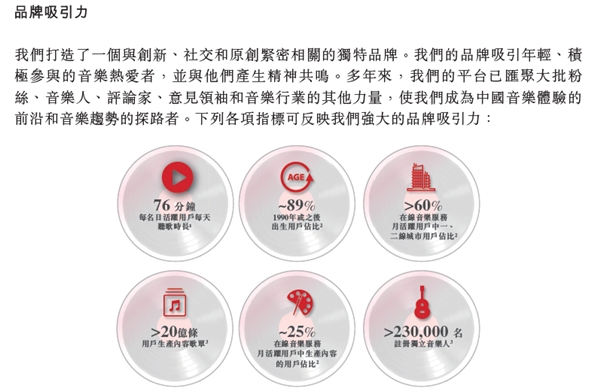招股书披露数据显示,目前网易云音乐约9成活跃用户为90后。此前公开信息也显示平台95后00后音乐人占比超7成。这一方面是网易云音乐飞轮效应的例证,同时也解释了其在年轻市场的明显优势。