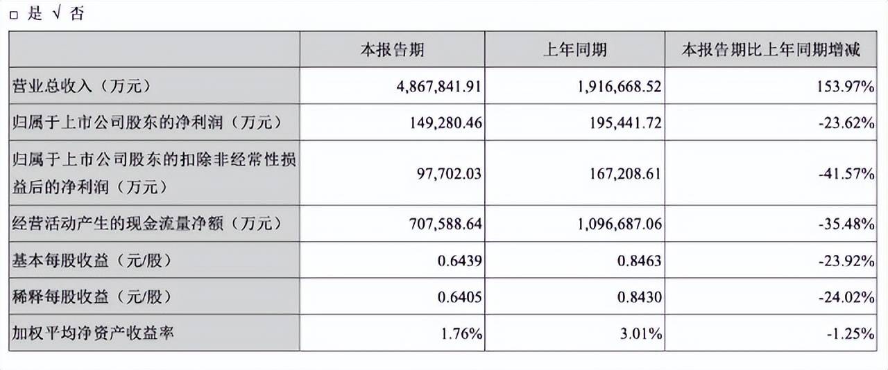 营收方面还很正常,486亿,算是大幅增长符合预期。但一季度只赚了15亿,同比下滑了24%,扣非后净利润更是下滑41%。所谓扣非后净利润,就是扣除非正常经营所得,这个指标更能看出企业实际的经营情况。