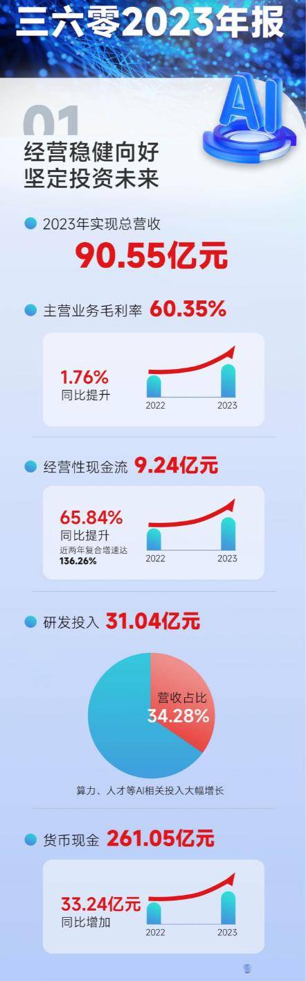 三六零晒2023年成绩单:主营业务毛利率60.35% 同比提升1.76%