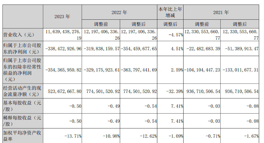2023年,中百集团营业收入达116.39亿元,同比下降4.57%;净利润更是亏损3.38亿元,同比增长4.51%。