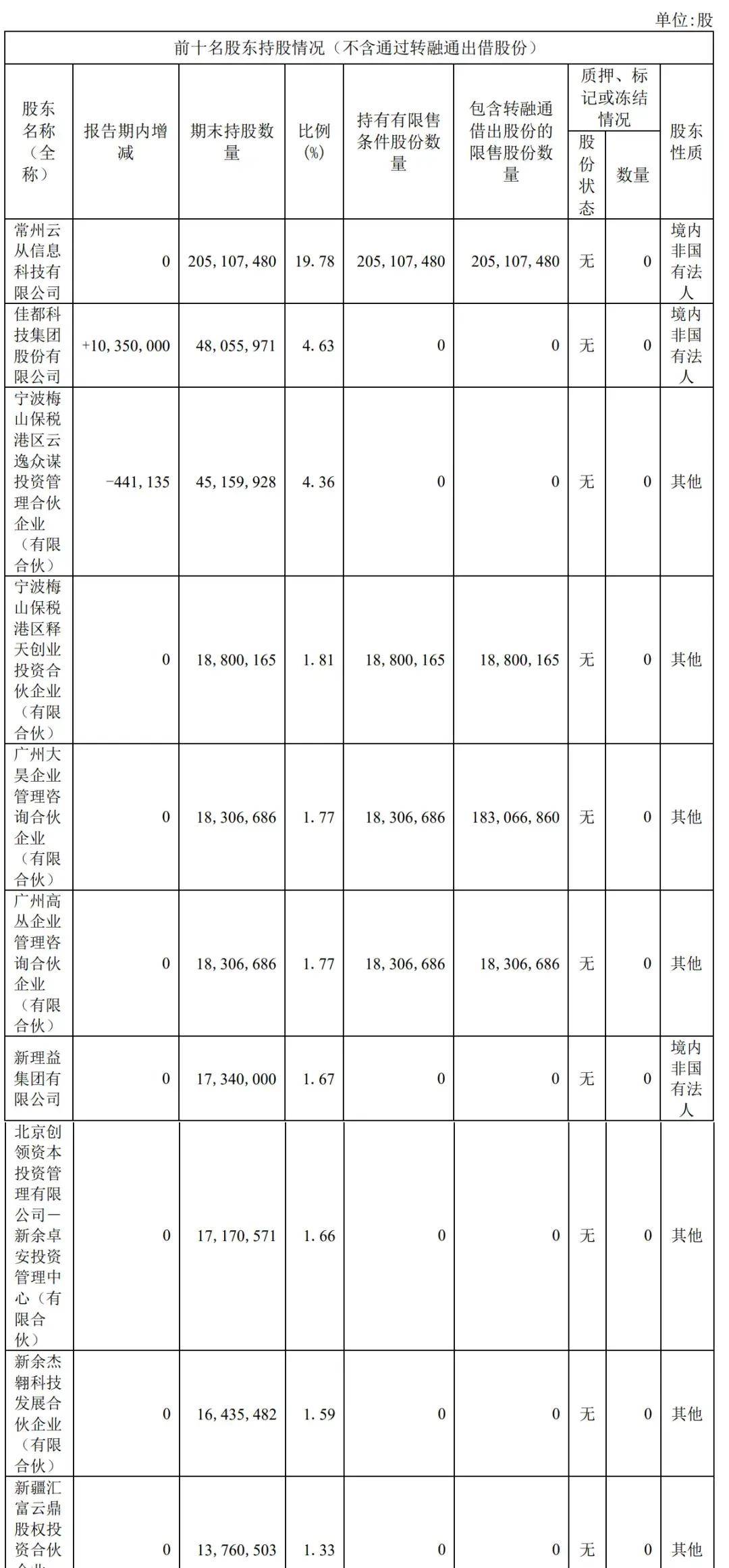 对比可发现,2024年第三季度,佳都科技持股比例下降了近1个百分点,宁波梅山保税港区云逸众谋投资管理合伙企业(有限合伙)持股下降了0.76个百分点。