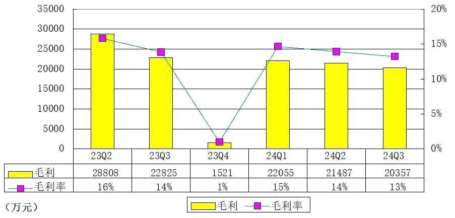 虎牙2024年第三季度毛利为2.04亿元,上年同期的毛利为2.43亿元;毛利率为13.2%,上年同期的毛利率为14.6%。