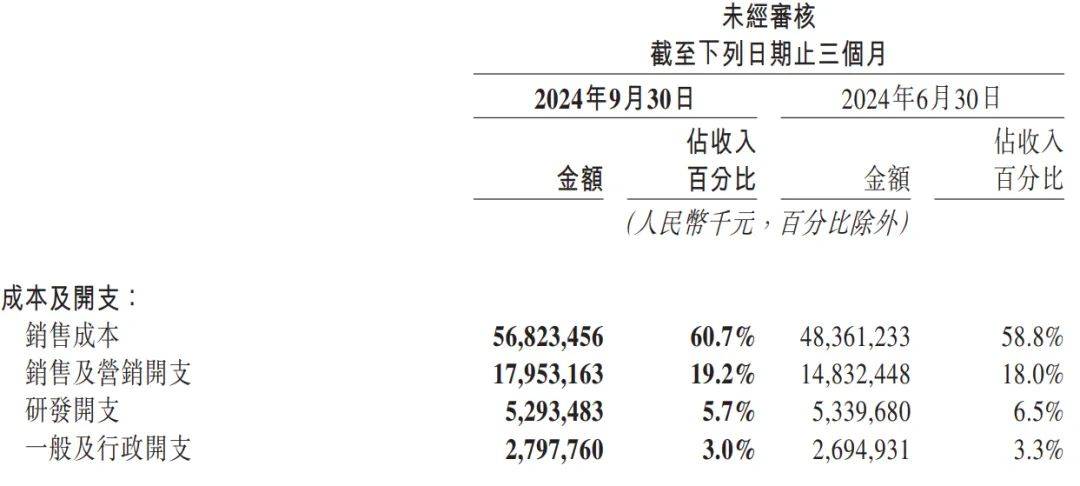 美团2024年第三季度销售成本为568亿元,较上年同期的484亿元增长17.5%;占收入百分比由58.8%增长1.9个百分点至60.7%。金额的增加主要由于实时配送交易笔数及季节性骑手补贴的增加导致配送相关成本增加;及商品零售业务销售成本增加。
