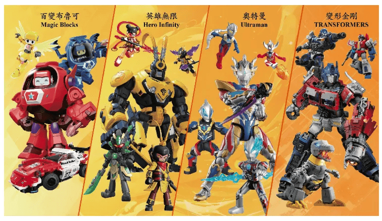 从积木玩具开始,2017年布鲁可推出自有IP“百变布鲁克”,同时也积累了丰富的拼搭类玩具知识,其后又战略性地丰富了产品组合,纳入了拼搭角色类玩具。2019年,布鲁可开始研发拼搭角色类玩具,并于2022年推出拼搭角色类玩具以及自有IP“英雄无限”。2023年,从IP版权方取得全球多个国家的IP授权,得以在海外市场推出拼搭角色类玩具。