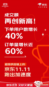 京东11.11成交额再创新高!下单用户数增长40%!订单量增长近60%!