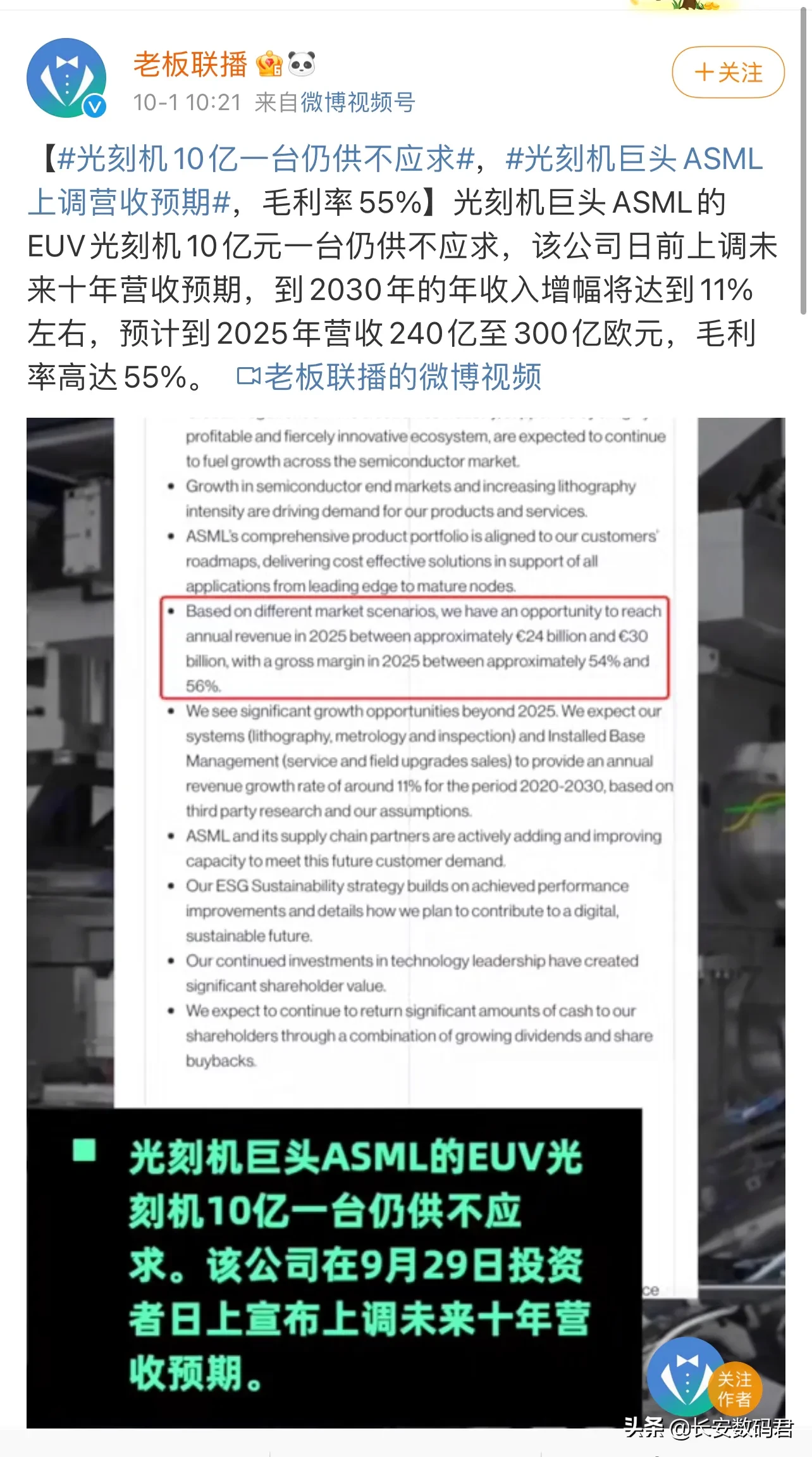 EUV光刻机10亿一台仍供不应求,基于此情况,光刻机巨头ASML上调营收预期,毛利率高达55%[灵光一闪]