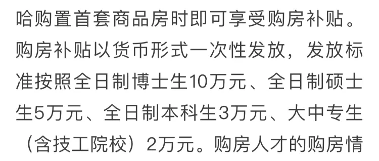 #哈尔滨头条# 好消息!好消息!哈尔滨房地产利好政策来了!最高补贴10万元!大中专以上毕业生在哈购房可发放补贴!