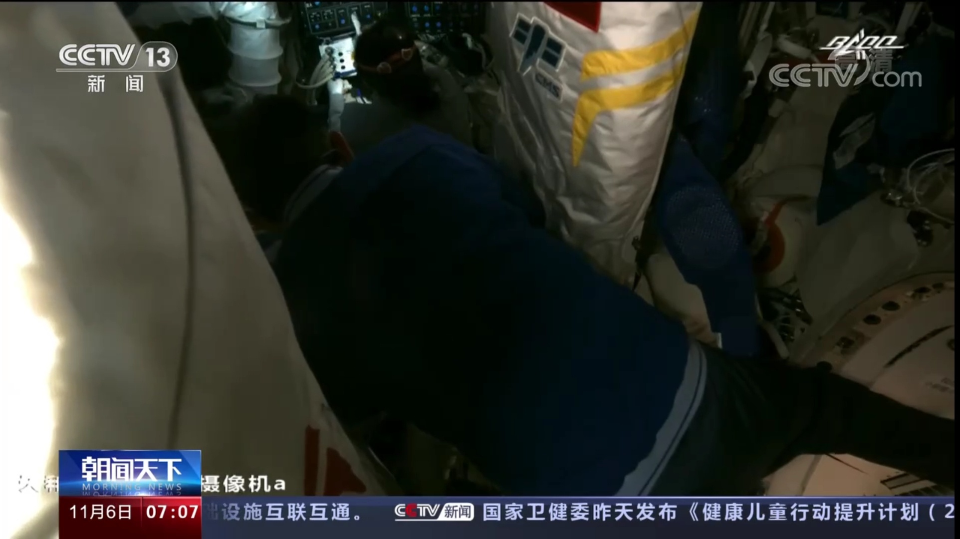 呃,今天这只是在演练,看样子今天不会出舱了,不出意外多半会是明天出舱了。唉,这节点舱灯光有点太暗了,应该多装点灯,这样大伙才能看得更清楚啊。