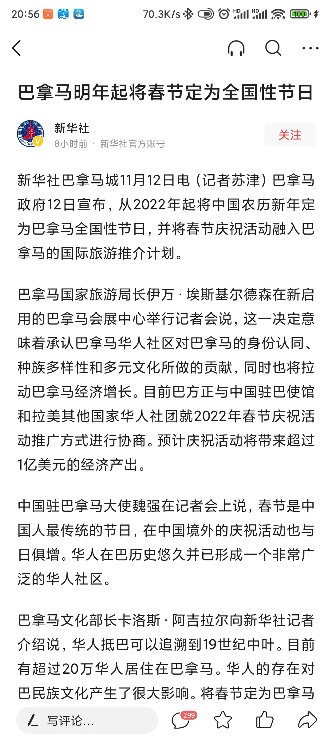 原标题:巴拿马将春节定为全国性节日 中国越来越强大了