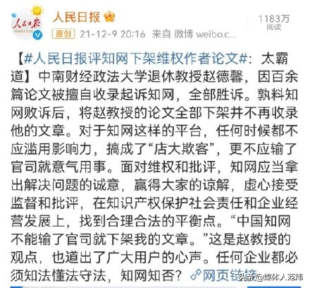 #中国知网道歉##人民日报评知网下架维权胜诉教授论文##知网向赵德馨教授致歉##论文##89岁教授160多篇论文被知网擅自收录##头条热点##媒体人周刊#