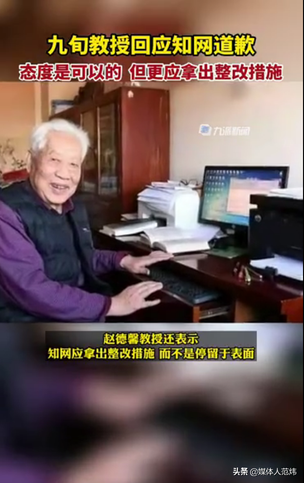 面对知网的道歉,赵德馨教授回道:应拿出具体整改措施。