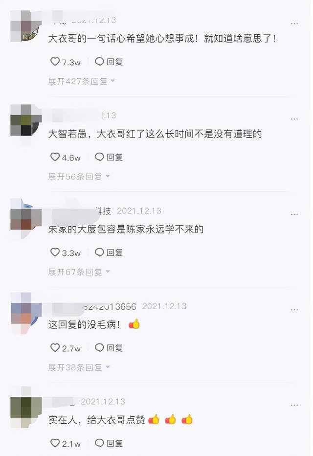 从这番话中,可以看出大衣哥已经完全不会理会陈亚男,也没有任何挽回儿子婚姻的想法。而他口中所说的“心想事成”,似乎还涵盖了另一番意思,网友纷纷表示,对比陈亚男家,大衣哥的大度令人称赞。