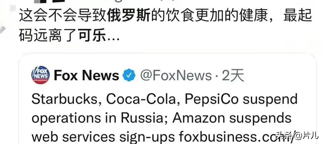 这事儿确实靠谱!俄乌争端发生后,众多西方品牌宣布退出俄罗斯市场,然而,两家著名可乐公司、两家洋快餐宣布退出俄罗斯市场引起了不小的轰动。近日,俄罗斯一家企业高调宣布格瓦斯和本土俄罗斯饮料将彻底取代可乐。随后,不少网友评论,这确实不是坏事、确实靠谱,因为俄罗斯本土产品会导致俄罗斯人越来越健康。