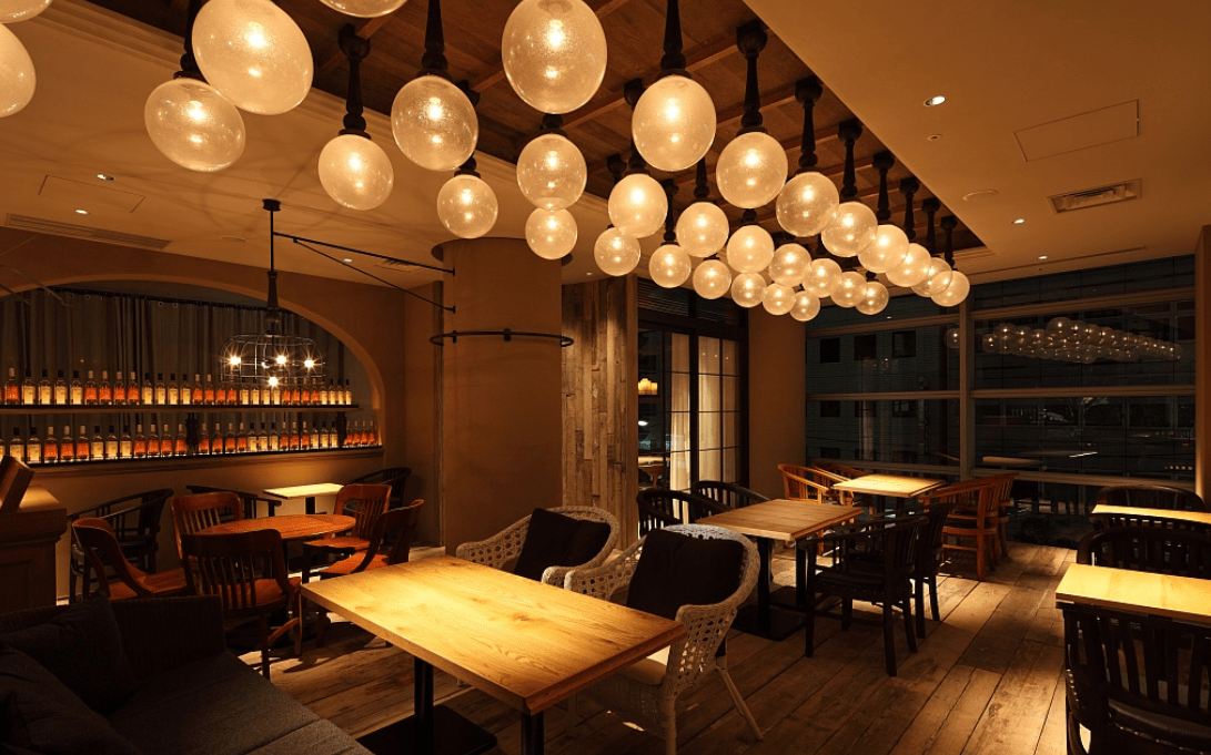 商业氛围更浓厚的选址策略,也让COMMUNE带有一种优于海伦司的精致感。走进三、四百平米的COMMUNE门店,独特的美式工业休闲风的装修风格和带有空间感的顶部挑高,给人一种明亮又宽敞的感觉。而整个室内空间也被酒水自选区、鸡尾酒吧台和餐桌分割成了不同的功能区域。