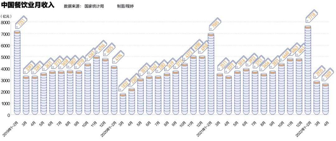 2020年初的新冠肺炎疫情,让整个行业顿时陷入停滞和瘫痪。然而三年过后,餐饮业的危机仍在持续。国家统计局发布的最新数据显示,2022年1——4月,全国餐饮收入13262亿元,同比下滑5.1%;其中,4月全国餐饮收入2609亿元,同比下滑22.7%。