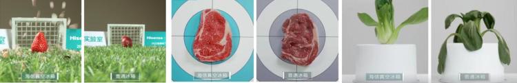 相比单独的数据表现,海信冰箱近期发布的真空·实验室系列视频以三个具有画面冲击力、直观对比性的实验过程将真空技术的极致保鲜力精准触达用户需求点。在“草莓试验”中,将不同冰箱中存放相同时间的草莓相互撞击后,真空存储过的草莓相对完整,充分表明海信真空冰箱更能减缓水分流失和果肉氧化。在“和牛试验”中,子弹射击真空环境中存储过的和牛能够反弹出更远的距离,并且和牛色泽鲜红。而在充满奇思妙想的“油菜实验”中,在海信真空冰箱中存储过多天的油菜依旧翠绿挺拔,让人充满食欲,这将海信真空冰箱有效减缓叶绿素损失的能力一展无遗。