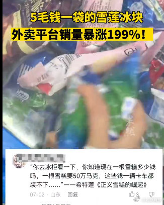 【#雪莲外卖平台销量暴涨199%# 曾激发网友创作“雪莲文学”】据齐鲁晚报,外卖平台数据显示,7月以来,雪莲的销量环比上月同期暴涨199%。据了解,目前,雪莲冰块只在生产地临沂及周边地区线下销售,无法在线上订购,雪莲负责人称考虑去河北河南建厂。此前,雪莲曾激发网友们创作出一批“雪莲文学”。
