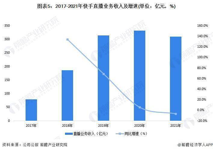 2021 年随着疫情得到控制,人们开始恢复正常生活模式,线上社交也娱乐生活时间下降,快手的直播业务收入也随之出现下滑。2021 年快手直播业务收入 309.95 亿元,同比下降 6.7%。整体来看,2017 年以来,快手直播业务收入增速呈下降趋势。