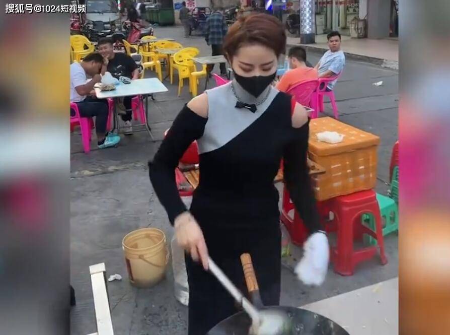 这位精致出摊的女摊主便是在社交平台走红的“炒粉姐”唐欣,因其精致的妆容和讲究的穿着,有人质疑她是否在借机炒作?