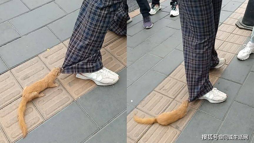 【女子行走突然跑来一只黄鼠狼,拽住她的裤腿不让走,把旁边人看懵】10月27日,北京。一名女子称路上行走时,突然不知从哪里跑来一只黄鼠狼,咬住旁边一位女子的裤腿不松口,看起来一点也不怕人,女子怕惊扰到它不敢动,待它松口的瞬间便往前走,未料小家伙竟跟过来,又拽住她的裤腿似是不想让她走。据视频拍摄者称,随后一位大爷拿出手套帮女子解围,大爷将黄鼠狼放树上后来就走了。