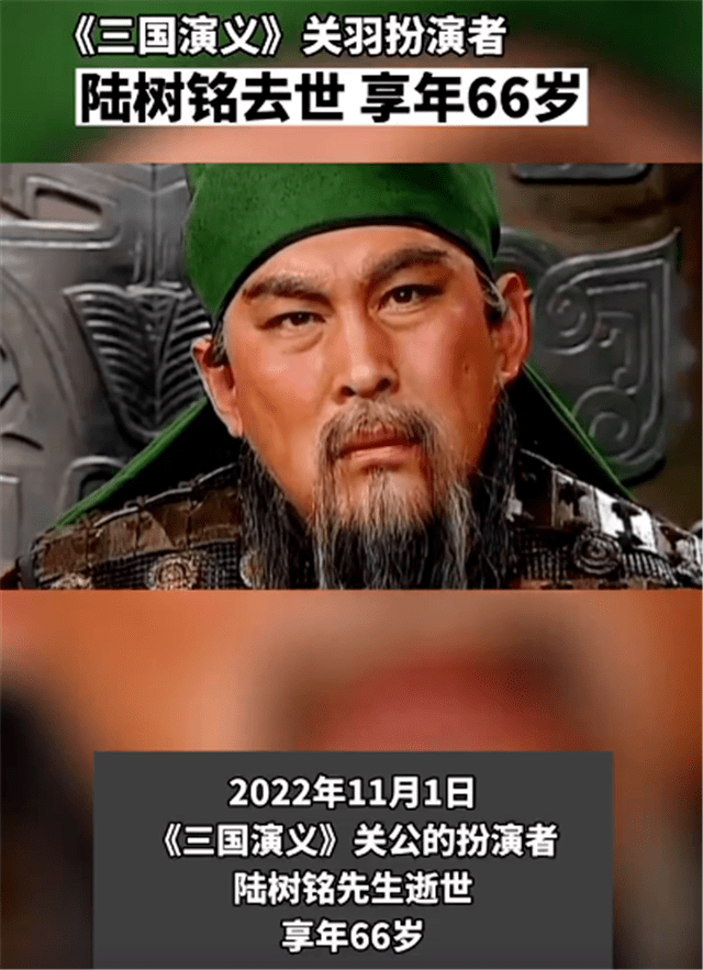 《三国演义》里关羽的扮演者——陆树铭先生于今天上午因病去世,享年66岁。
