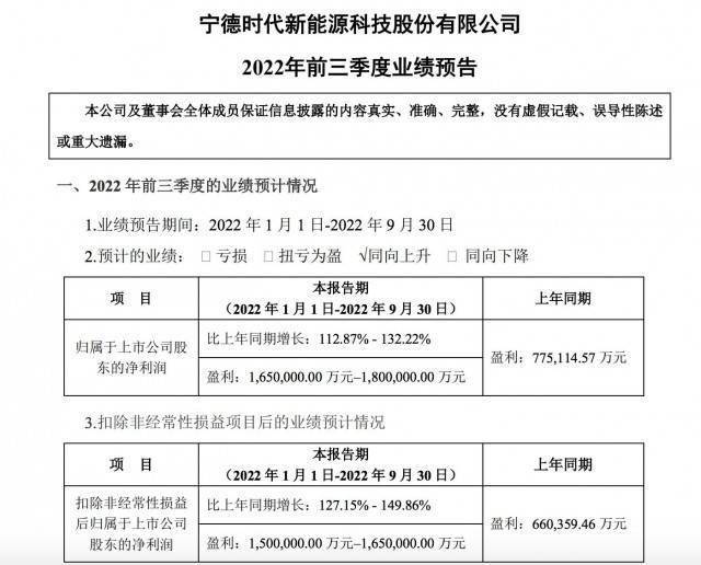 宁德时代:预计2022年净利润291亿元-315亿元,同比增长82.66%-97.72%