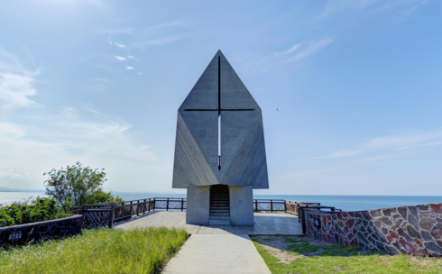 鸡鸣岛的悬崖上有一座小小的教堂,它可以被称之为“光之教堂”,迎着十字架缝隙洒进来的光芒,走上去就可以遇见蔚蓝的大海,非常浪漫。因为造型奇特、意境深远,它已经成为极受欢迎的网红打卡地,你也可以在这里留下自己的照片,记录海与天的景色。