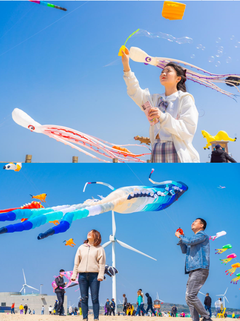 如果春风没有纸鸢,如果春色没有故事,那这个春天也不再完整。在今年的风筝文化节上,既有巨型风筝展演,还有“听见山海音乐荟”,还可以免费领取风筝,小丑互动巡游、魔幻泡泡秀,也为春天的沙滩格外增添了一抹乐趣。