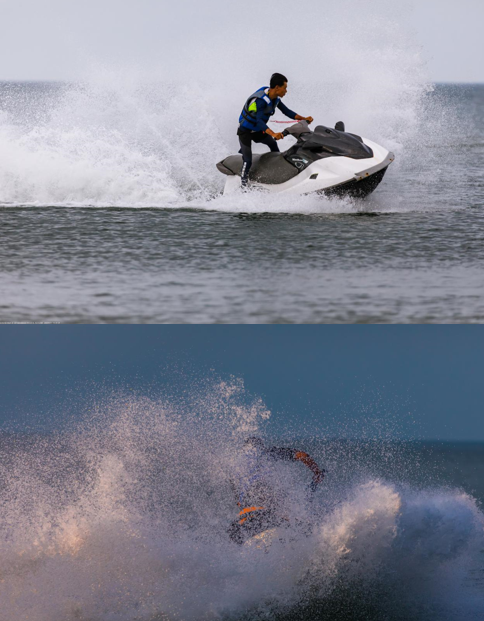 海的玩法,不是只有远远眺望或沙滩踏浪,也可以跨上摩托艇,飞驰在浪尖上感受海风的狂妄,追着落日直到天空、大海与你,都被染成迷人的橘红色。