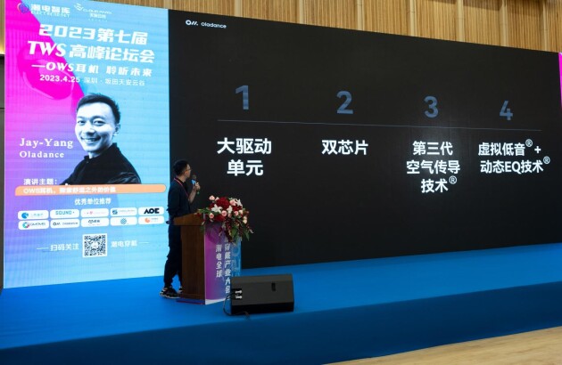 在上周结束的第七届TWS高峰论坛上,Oladance首席产品官Jay带来了关于OWS耳机品类的技术发展和未来趋势的分享。在会上他阐述了OWS的概念以及为OWS耳机定义了一套产品标准,并表示今后将会和行业一起继续深入开拓,将OWS耳机品类不断做大做强,为用户创造更多元化的价值和体验。