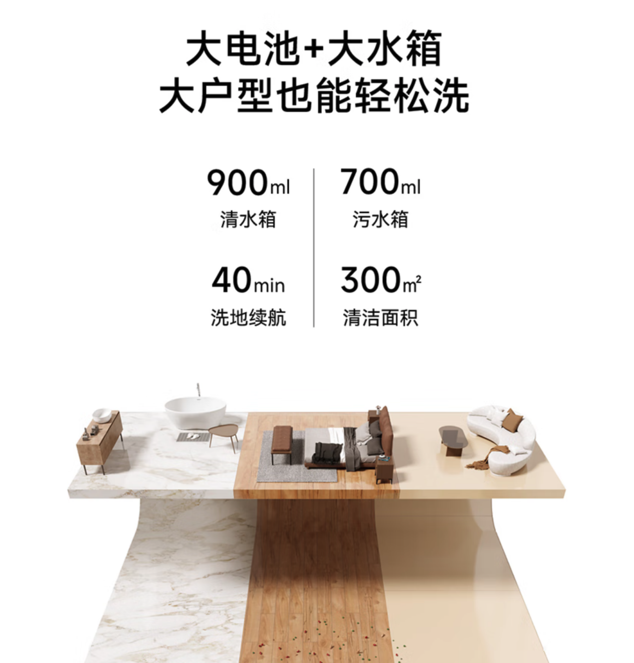 在其他方面,追觅M13 Pro Ultra搭载5000mAh大容量电池,洗地续航可达40min,吸尘续航可达75min,可以为长时间的持续清洁提供强有力的续航保障。搭配大容量900ml清水箱以及700ml污水箱,追觅M13 Pro Ultra一次清洁过程可以满足300m²面积的清洁需求,能大幅降低使用过程中加水、倒水、充电的频率。