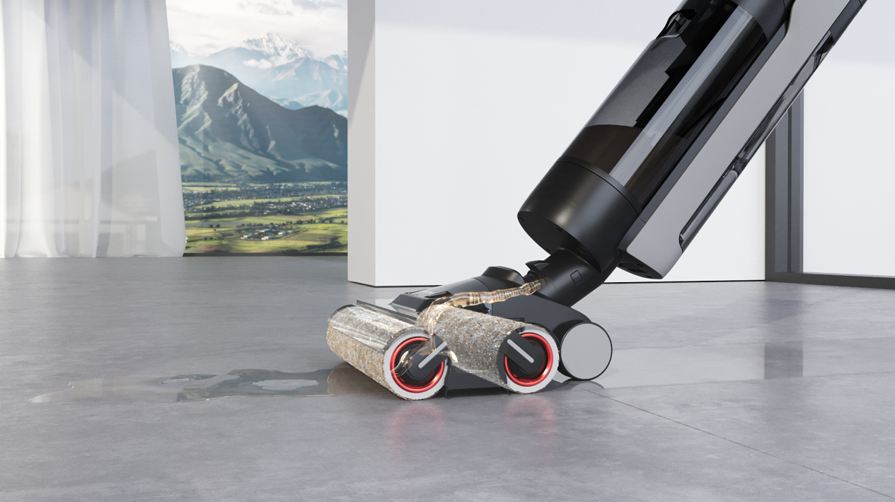 为提供更高效的清洁效果,追觅M13 Pro Ultra采用创新双滚刷设计:每个滚刷都配备独立电机,可以实现1000转/分钟高频擦地。区别于传统的单刷设计,双滚刷通过双向旋转,前刷吸走大小垃圾,后刷对前刷清洁过的区域进行二次清洁,同时把残留的水渍吸走,推动一次便可获得双倍清洁力。加上搭配全新32孔双水路活水喷淋系统以及双侧0贴边设计,追觅M13 Pro Ultra清洁体验更上一层。
