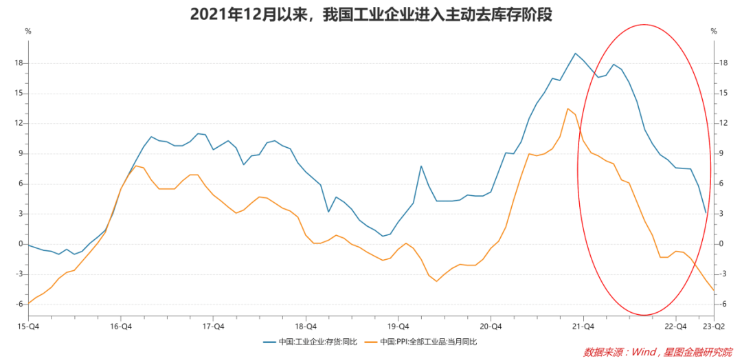 二是库存周期触底回升。自2021年12月以来,我国工业企业进入去库存周期。历史上看,主动去库存平均持续15个月左右,本轮库存周期受疫情影响有所延长,当前主动去库已持续18个月。主动去库阶段,企业降价去库存,盈利承压(2022年,全国规模以上工业企业利润同比下滑4%,2023年1-4月,同比下滑20.6%),缺乏扩大再生产的动力,表现为投资和融资需求疲弱。但市场普遍预期,随着PPI逐步企稳,工业企业主动去库周期也有望于2023Q3结束,届时,企业盈利预期趋稳,投融资需求有望明显改善,助力经济复苏向上。