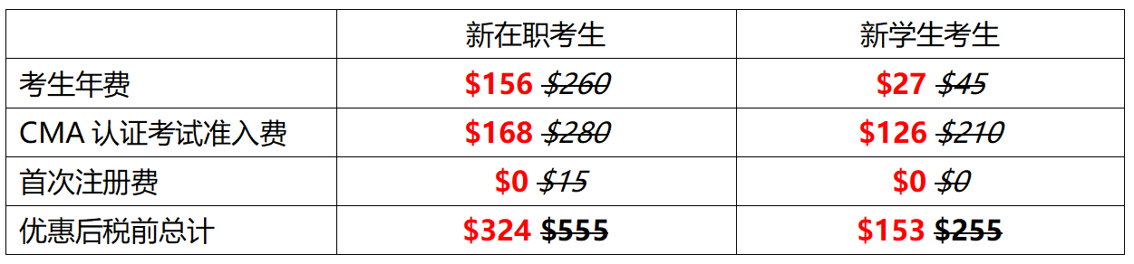 此优惠只针对首次加入的在职考生及学生考生类别,对考生续费与已经报名参加CMA项目的考无效。
