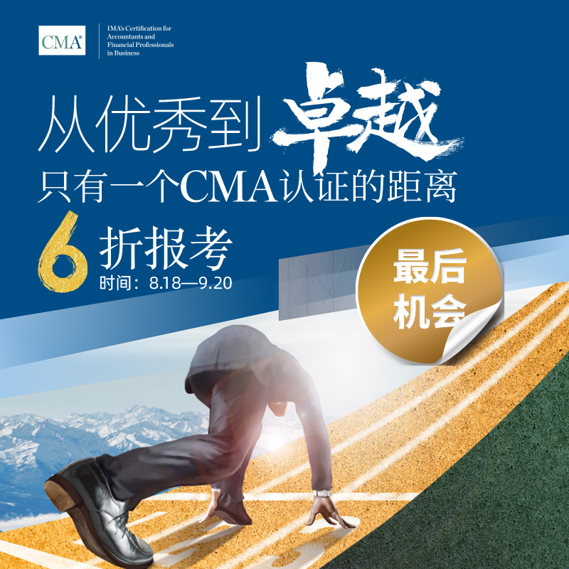 IMA管理会计师协会决定将于2023年8月18日至9月20日,对CMA新在职考生与新学生考生进行优惠活动,考生年费6折,CMA认证考试准入费6折,免除首次注册费,在职考生共节省231美金,学生考生共节省102美金。折扣代码为: CHFALL40S