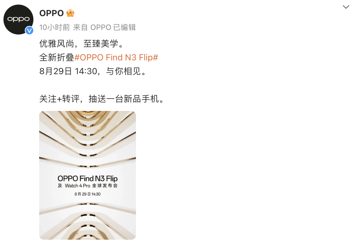 包括OPPO在内,中国手机品牌不断推陈出新的产品阵容,已经成为引领国内折叠屏手机市场的重要推动力。从Find N2 Flip到Find N3 Flip,OPPO又将会在小折叠屏手机上带来哪些创新体验,可以关注8月29日14:30的新品发布会了解。