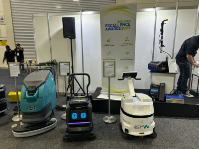 哈工澳汀商用无水清洁机器人与国际清洁巨头Tennant、新加坡机器人创新代表Lionsbot一同角逐2023年INCLEAN创新卓越奖,最终哈工澳汀荣获INCLEAN创新卓越奖(large设备类唯一奖项)。