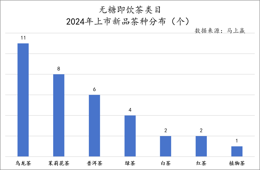 从茶种的角度看,乌龙茶、茉莉花茶、普洱茶、绿茶是今年上新的热门赛道,也是上文中市场规模占比排名前4的茶种,排序完全相同。相对特殊的是白茶,市场份额远低于红茶,但却出现了两款新品。