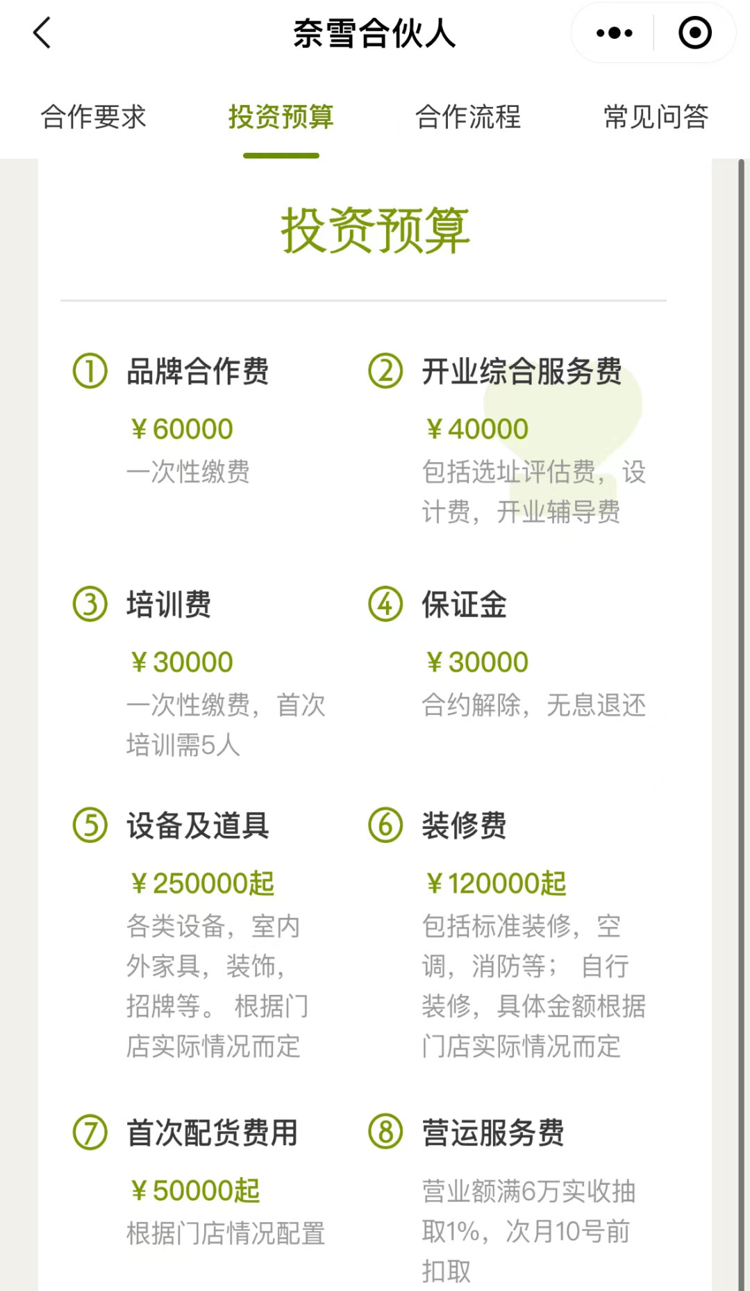 书亦烧仙草的加盟新政里也明确打出“0品牌费、0服务费、0合作费”,另外设备费还可分期支付;茶百道的加盟政策则强调“减免”,无论新老加盟商,新开门店越多,减免力度越大。