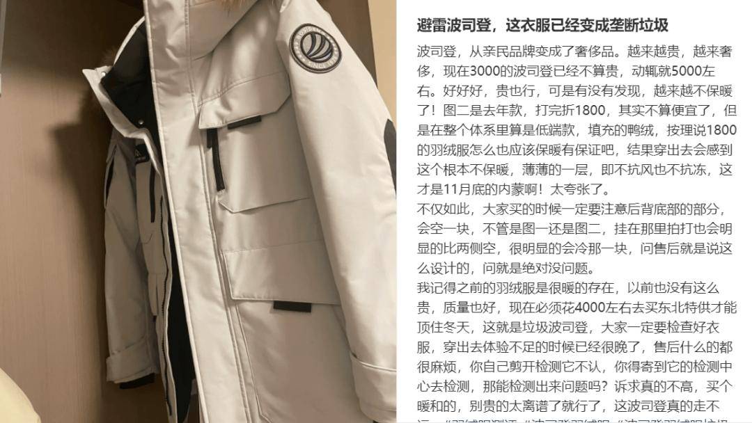 但在社媒平台上,有购买过“极寒”系列的消费者吐槽称,“极寒”羽绒服肩膀、袖子部分充绒不足,“买的还是东北特供款,但肩膀和袖子都很不保暖”“北京零下十几度,穿波司登的‘极寒’根本扛不住”。