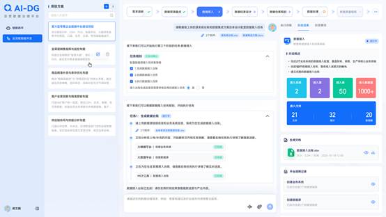 平台采用“对话式治理”新模式,用户通过自然语言描述业务需求,系统即可精准理解意图并自动调度多智能体协同工作,完成数据探查、标准制定、模型设计与集成开发的全链路任务。该创新交互将传统数月的设计开发周期压缩至天级,显著提升业务团队参与深度和治理效率。