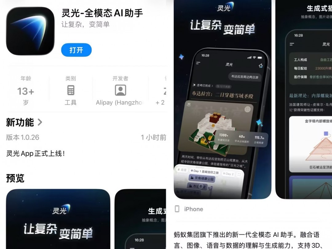 蚂蚁推出全模态通用AI助手“灵光” 支持30秒生成应用