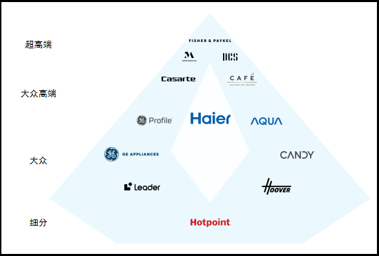 美国市场:海尔品牌、GE Appliances及其旗下Monogram、Café、GE Profile覆盖大众、高端、超高端市场,协力推动GE Appliances成当地第一大家电公司。